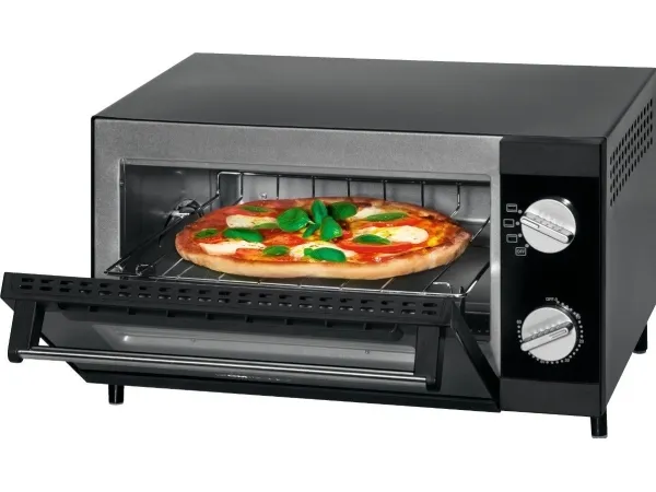 MPO 3520 Multi pizza oven - Pizza oven ideal for grilling and crisping up - Large grill, ideal for pizza (26 x 25 cm) - Including baking tray (23,5 x 22 cm) - Capacity: ca. 12 liter - Top and bottom heat (combined operation possible) - 4-step switch (top heat, bottom heat, top and bottom heat combined, off) - 2 quartz heating elements - 60-minute timer with end signal - Stainless steel handle - Crumb tray - Overheating protection - Power supply: 230 V, 50 Hz - Power unit: 1000 W - Dimensions: approx. 22 x 37,5 x 33 cm (HxWxD)