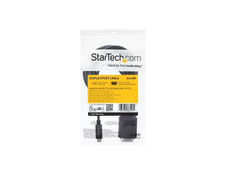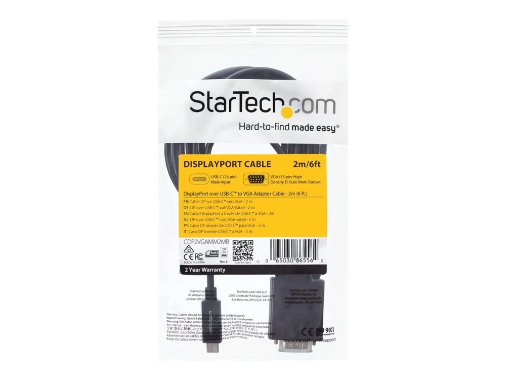 StarTech.com 6ft (2m) USB C to VGA Cable, 1920x1200/1080p USB Type C to VGA Video Active Adapter Cable, Thunderbolt 3 Compatible, Laptop to VGA Monitor/Projector, DP Alt Mode HBR2 Cable - 2m USB-C Video Cable (CDP2VGAMM2MB) - video / USB kabel - 24 pin USB-C til HD-15 (VGA) - 2 m