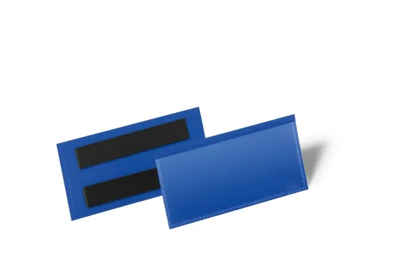 DURABLE 1741 magnetiske etiketter taske 100 x 38 mm, blå, 50 stk. Etiketter taske med to bageste magnetstribe for en optimal mærkning i produktion og lejet. Anvendelse på metalliske overflader som for eksempel på lager reoler og metal beholdere. Blå ryg folie og transparente for folie af slidstærkt polypropylen. Scanner og egnet til permanent. Hurtig udskiftning af indstiksskilte. Download forelagt af indstiksskilte på www.dura print.dk. Indvendig format: 100 x 38 mm (b x h). Udendørs format: 113 x 53 mm (b x h).