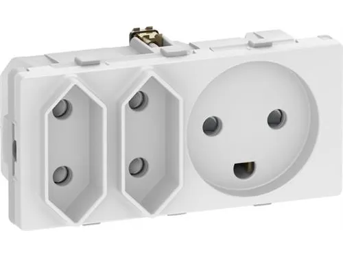 FUGA kombineret klasse 1 og klasse 2 tripel stikkontakt 2 modul, hvid LK FUGA-rammer, -dåser og underlag er testet sammen med LK FUGA-indsatse. Schneider Electric kan ikke garantere for kvaliteten og overholdelse af gældende standarder, såfremt LK FUGA-produkter anvendes med produkter fra andre fabrikater.