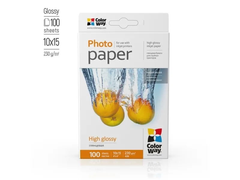 ColorWay - fotopapir - høj-skinnende - 100 ark - 100 x 150 mm - 230 g/m²
