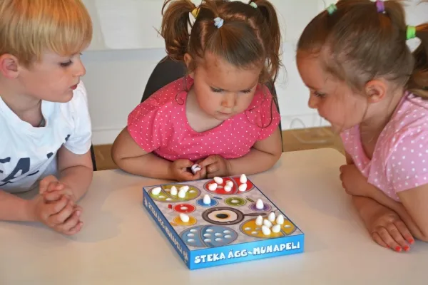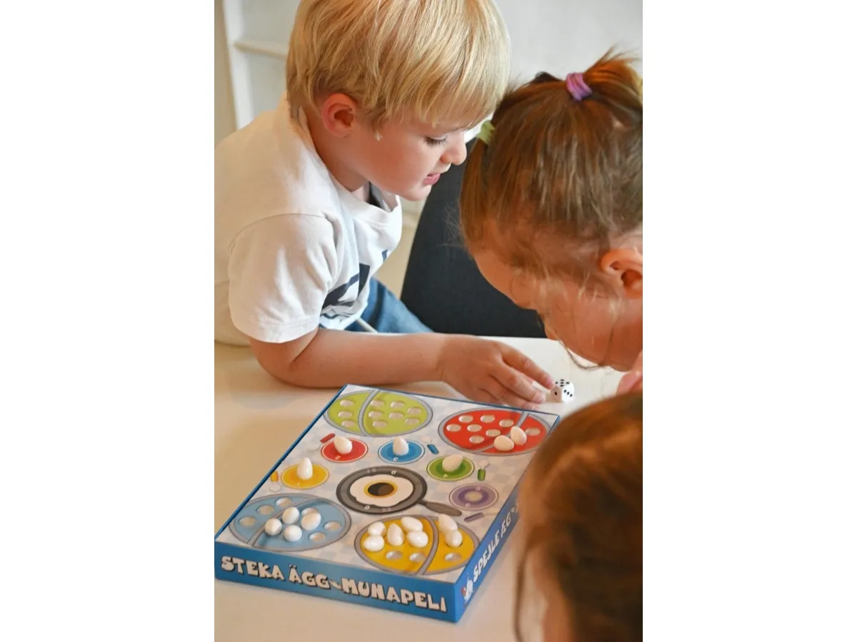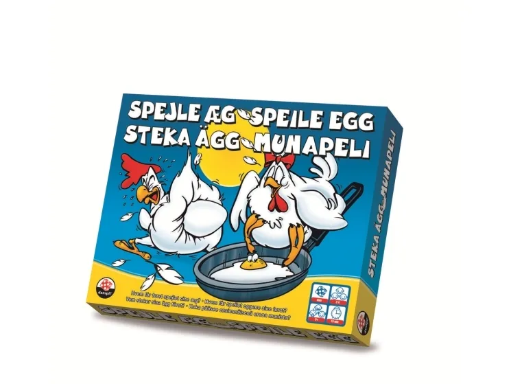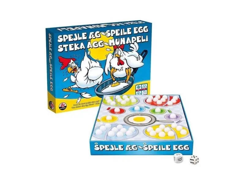 Spejle æg er et taktisk terningespil for hele familien. Fra 3 år. Spejle æg er et spændende og taktisk terningespil for hele familien. Det gælder om at slå med terningen, hvorefter man enten tager eller afleverer æg. Vinderen er den spiller, der først kommer af med alle sine æg. Taberen er den spiller, der til slut sidder tilbage med æg i kurven. Spilletid: Ca. 15 minutter. For 2-4 spillere. Fra 3 år.