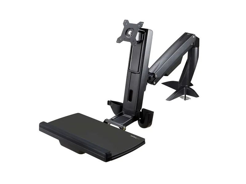 StarTech.com Sit Stand Monitor Arm, Desk Mount Adjustable Sit-Stand Workstation Arm for Single 34" VESA Mount Display, Ergonomic Articulating Standing Desk Converter with Keyboard Tray - Stand Up Office Desk (ARMSTSCP1) monteringssæt - for monitor / tastatur