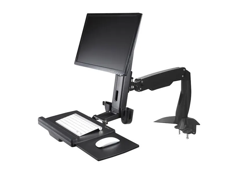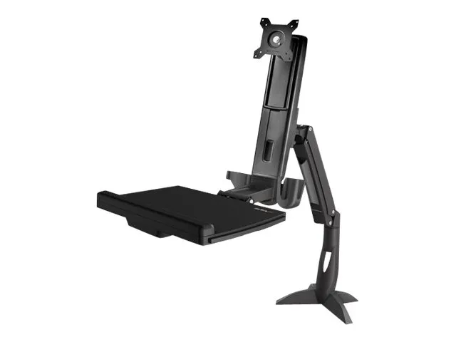 Enjoy a more ergonomic workspace with this sit-stand desk mount. This sit-stand monitor arm transforms your desk or tabletop into an ergonomic workstation. The monitor arm features a keyboard tray and easy height adjustment that lets you alternate between sitting and standing, without interrupting your workflow. Move your workstation up or down, left or right, to meet your needs.