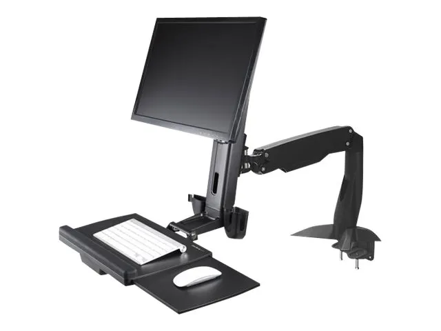 StarTech.com Sit Stand Monitor Arm, Desk Mount Adjustable Sit-Stand Workstation Arm for Single 34" VESA Mount Display, Ergonomic Articulating Standing Desk Converter with Keyboard Tray - Stand Up Office Desk (ARMSTSCP1) - Monteringssæt (bundplade, kolonne, ring plade, tastaturbakke, spændeskiver, monitorarm, klemmebøjle, base, basepude) - for monitor / tastatur - skærmstørrelse: op til 24" - skrivebord - for P/N: LAPTOP-SIT-STAND