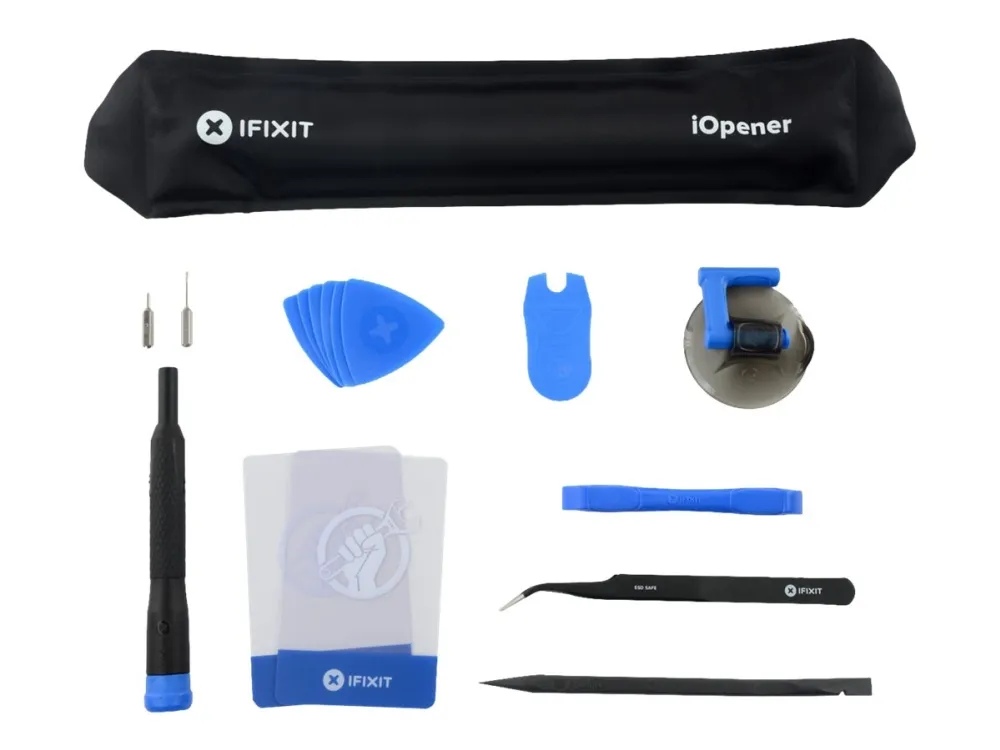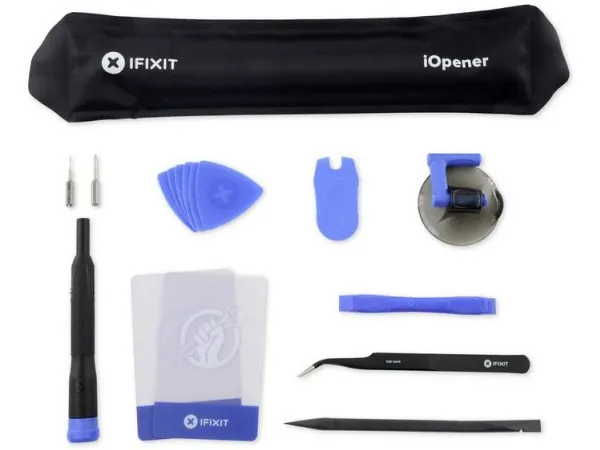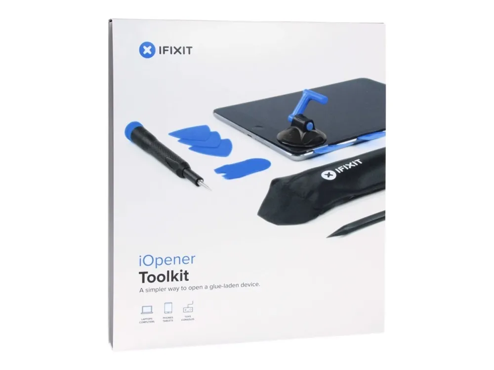 Put the heat right where you need it!\n\n- A simpler and safer way to open a glue-laden device.\n- Heated in a microwave, the iOpener softens adhesive.\n- This kit is designed to service every generation of Apple iPad, but can also be used for many more devices.\n\nKit Contents:\n\n- iOpener\n- iFixit Opening Picks set of 6\n- Small Suction Cup\n- Tweezers\n- Plastic Cards\n- Spudger\n- Anti-Static Project Tray\n- Double-ended Opening Tool\n- Phillips #000, Phillips #00, Phillips #0, Torx T5, Sim Eject, and Magnetic Pickup screwdriver bits\n- Black 4mm Screwdriver Handle