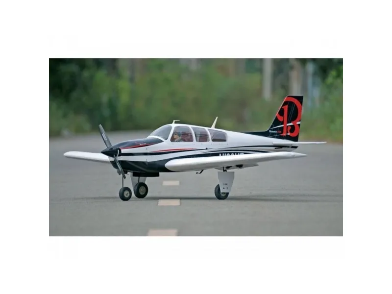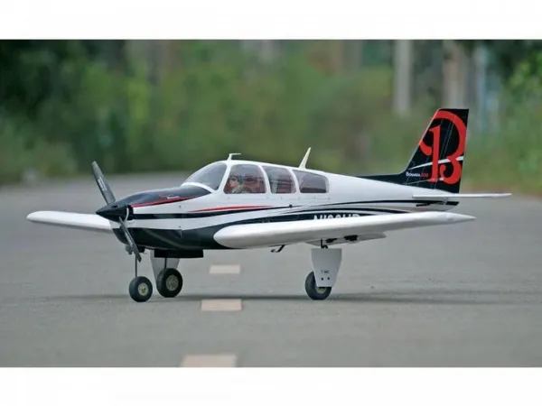Beechcraft Bonanza (US version) Beklædt som vist 2-dele. Vinge med stabil aluminiumsrørsstiktilslutning Inkl. Hjul, forbindelser, smådele I mere end 60 år er Beechcraft Bonanza blevet bygget og er dermed det mest byggede rejse- og forretningsfly i hele verden. Ved gennemførelsen af modellen har vi bevidst udeladt et V-haleparti for at sikre nem håndtering. En elegant, meget god flyvende model.