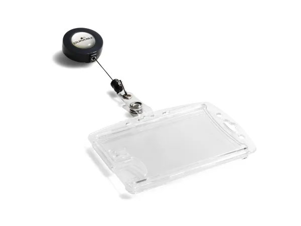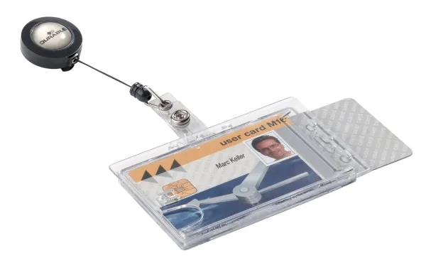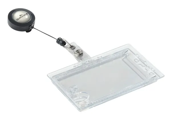 Adgangskort holder af slidstærkt akryl med yoyo med 80 cm udtræk og plaststrop med trykknap. Med plads til 2 stk. adgangskort, sikkerhedskort, plastikkort eller ID-kort. Enkelt at udskifte kort ved hjælp af tommegreb. Metalclips på bagsiden af yoyo til fastgørelse til dit bælte eller linning. Kan anvendes både liggende og stående.