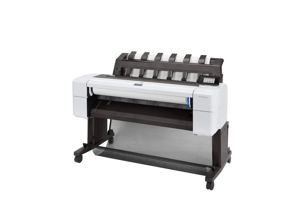 Dynamic security enabled printer Certain HP printers are intended to work only with cartridges that have a new or reused HP chip or electronic circuitry. These printers use dynamic security measures to block cartridges using a non-HP chip or electronic circuitry. Periodic firmware updates will maintain the effectiveness of these measures and block cartridges that previously worked. Reused HP chips and electronic circuitry enable the use of reused, remanufactured, and refilled cartridges.HP Designjet T1600 36-in Printer. Print technology: Thermal inkjet, Maximum resolution: 2400 x 1200 DPI, Page description languages: HP-GL/2, HP-RTL, PDF 1.7, PostScript 3, TIFF. Maximum print size: 914 x 1219 mm, Paper tray media types: Bond paper, Coated paper, Glossy paper, Heavy paper, Matte paper, Satin paper, Semi-glossy paper, ISO A-series sizes (A0...A9): A0, A1, A2, A3, A4. Ethernet interface type: Gigabit Ethernet. Product colour: Black, White, Internal storage capacity: 500 GB, Storage media: HDD. Power consumption (typical): 100 W, Power consumption (off): 0.3 W
