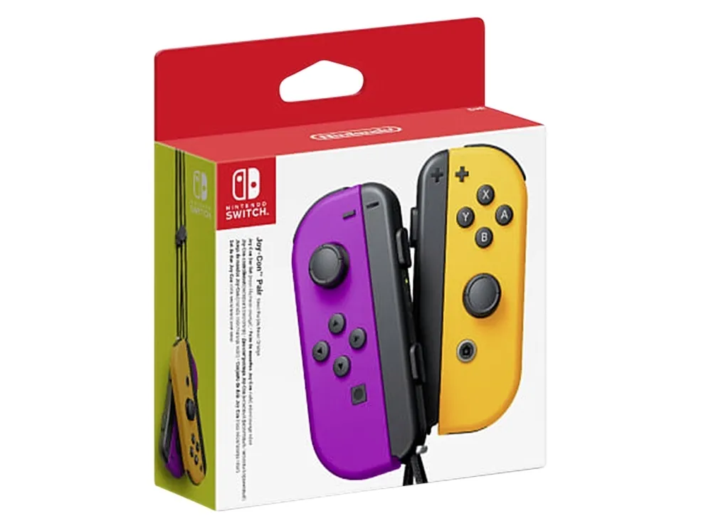 A Joy-Con (L) and Joy-Con (R) together make up a set of Joy-Con controllers. Pick up an extra set of Joy-Con controllers to open new kinds of gaming possibilities!\n\nThe right Joy-Con Controller includes an NFC touchpoint to unlock amiibo functionality.\n\nThis set includes a Neon Purple Joy-Con Controller (L), a Neon Orange Joy Con Controller (R) and two black Nintendo Switch Joy-Con Controller Straps.