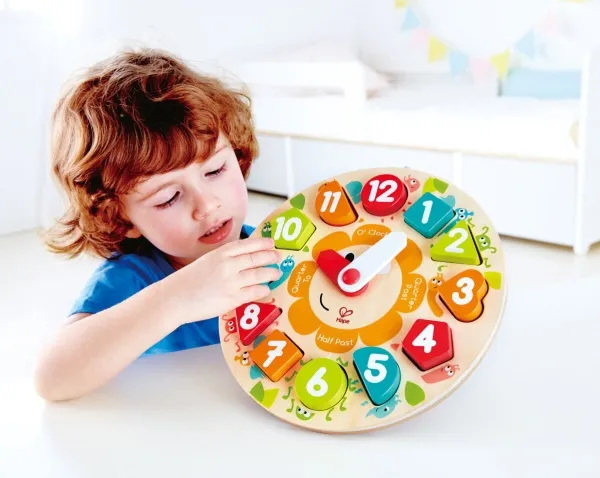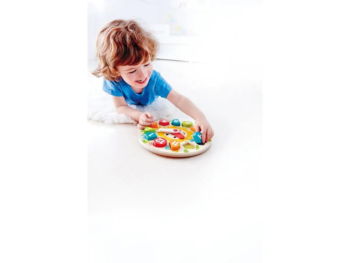 Lær klokken at kende med disse fine brikker i kraftigt træ, og i fine udskæringer