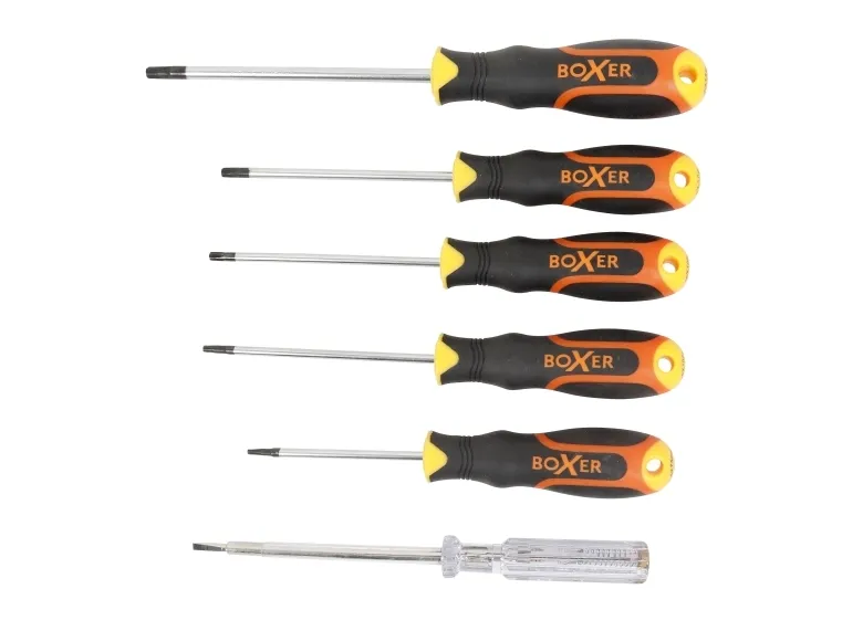 Boxer® torx er inddelt i 5 størrelser, hvor presset fordeles på 6 kontaktpunkter. Torx skruer som til at starte med var populære i industrielle og elektroniske sammenhænge men bruges nu mere og mere i DIY branchen, da de har en større kontaktflade mellem skruen og skruetrækkeren, hvilket giver en stærkere forbindelse og reducerer risikoen for skade på skruen.