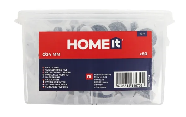 Antal: 80 stk Størrelse: Ø24 mm Pakket i praktisk boks. Farve: Grå