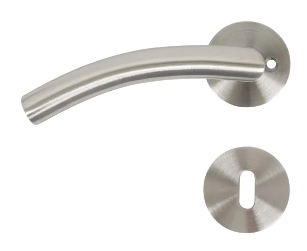 Dørtykkelse: 30-45 mm Materiale: rustfri stål Med fast roset B-greb design Ø19 mm Kvalitet: 201 rustfri stål Flot finish med meget tynd roset, som gør grebet eksklusivt Inkl. 2 stk. nøgleskilte og komplet universal monteringssæt til nye og ældre døre.
