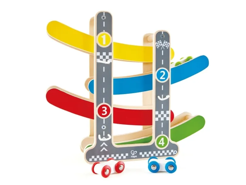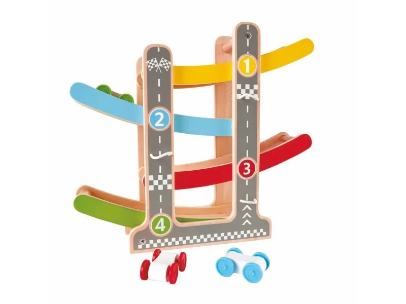 Sjov kørebane for de små. Materiale: Træ. Alder: 18mo.+