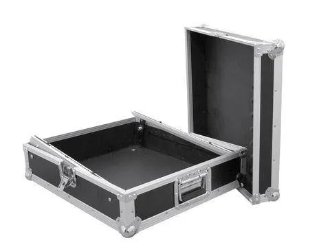 Mikser-case professionel MCV-19,variabel,sw 12HE Passer til apparater på 483 mm (19), for eksempel Controller og mikserpulte, med 12 HE · skrå, profilskinner for optimal betjening af enheden fra oven · eksklusiv forarbejdning med 6 mm flerlagslimtræ, sort lamineret · aluminiumprofilramme (25 mm) med afrundede hjørner · aftageligt låg · trebenede, mellemstore stålkuglehjørner · 2 eksklusive, Aflåselige butterfly-låse · 4 stålforstærkede gummifødder · polstret bæregreb · skruer, rackmøtrikker og spændeskiver vedlagt (hver 18 stk.). Professionel Flightcase til apparater på 483 mm (19).