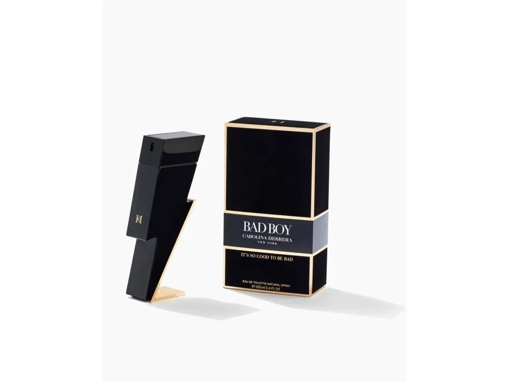 The BAD BOY Eau de Toilette fragrance bottle is as distinctive as he is with a striking bolt, symbolizing his heroic strength and headstrong characteristics.