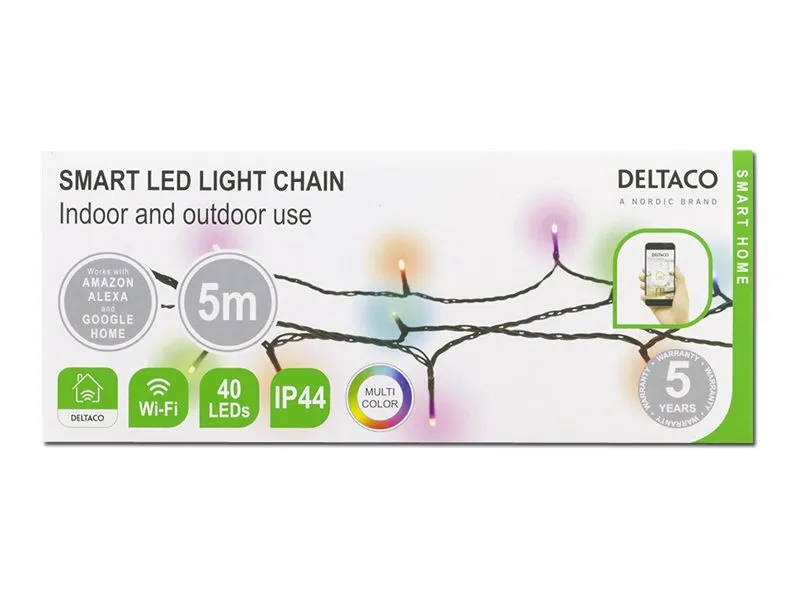 Med SH-LRGB5M fra DELTACO SMART HOME kan du nemt og hurtigt skabe flotte lysdekorationer, perfekt som julebelysning, gør-det-selv-projekter eller som dekorativ belysning året rundt. Det kan bruges på din terrasse/altan til at skabe en hyggelig atmosfære eller indendørs til at skabe smukke lysdekorationer, der forstærker stemningen og giver lige det ekstra til indretningen. Du skal blot sætte den medfølgende strømadapter i en stikkontakt, så er du klar.