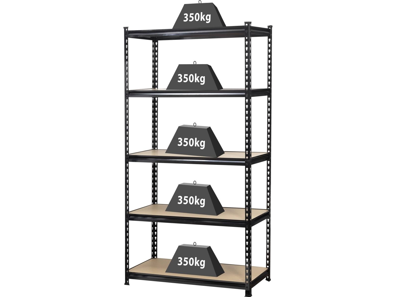 Reol til tunge genstande 350 kg Enkel og hurtig montering · 350 kg bæreevne per bund · Montering uden skruer, kan sættes sammen · Vilkårligt anvendelige indlægsbunde (alle 68 mm) · Passer til kælderen, værkstedet og meget mere. Sværlastreolen af metal er udstyret med i alt fem hylder og imponerer med den solide og robuste forarbejdning. Hver hylde har en kapacitet på op til 350 kg ved ensartet fordeling. Reolen til tunge ting udmærker sig med sin gode stabilitet og fleksibilitet i det daglige brug. Afstandene på jorden kan tilpasses individuelt til dine behov.
