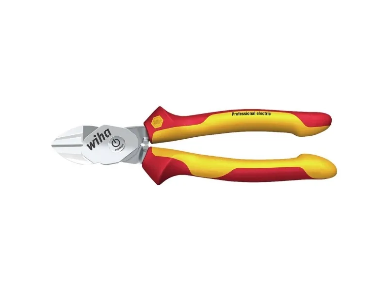 Højeffektsskævbider BiCut® Professional med DynamicJoint® kan omstilles 200 mm, 8 (38984) Til ekstremt hårde og kraftigere materialer bliver en kraftskævbider med høj effekt ved hjælp af en patenteret ledkonstruktion. Denne funktion er dog ikke kun egnet til skæring af ekstremt hårde materialer, men også til brugere, der udfører normale klippearbejder over længere tid. Takket være den dobbelte skærekraft skal der tilsvarende påføres 50 % mindre håndkraft. På den måde er arbejde, der skåner musklen og skikke, muligt. Risikoen for at blive ridset eller glide af ved overdreven kraftanvendelse reduceres betydeligt. Desuden er grebsryggen ekstra bred designet, og de indbyggede hårde og bløde zoner er tilpasset håndtagene optimalt til ergonomi på den menneskelige hånd. Den højtydende skærer er fremstillet i henhold til den internationale standard IEC 60900 og er dermed godkendt til arbejde inden for spændingsførende dele op til 1.000 V AC.