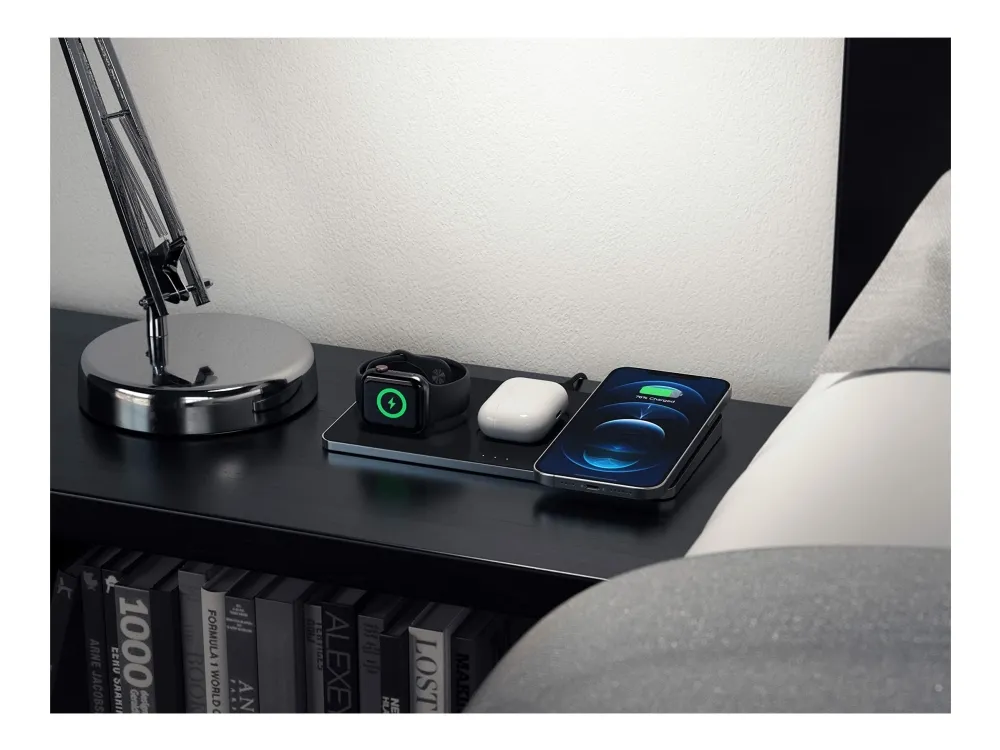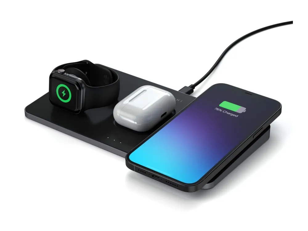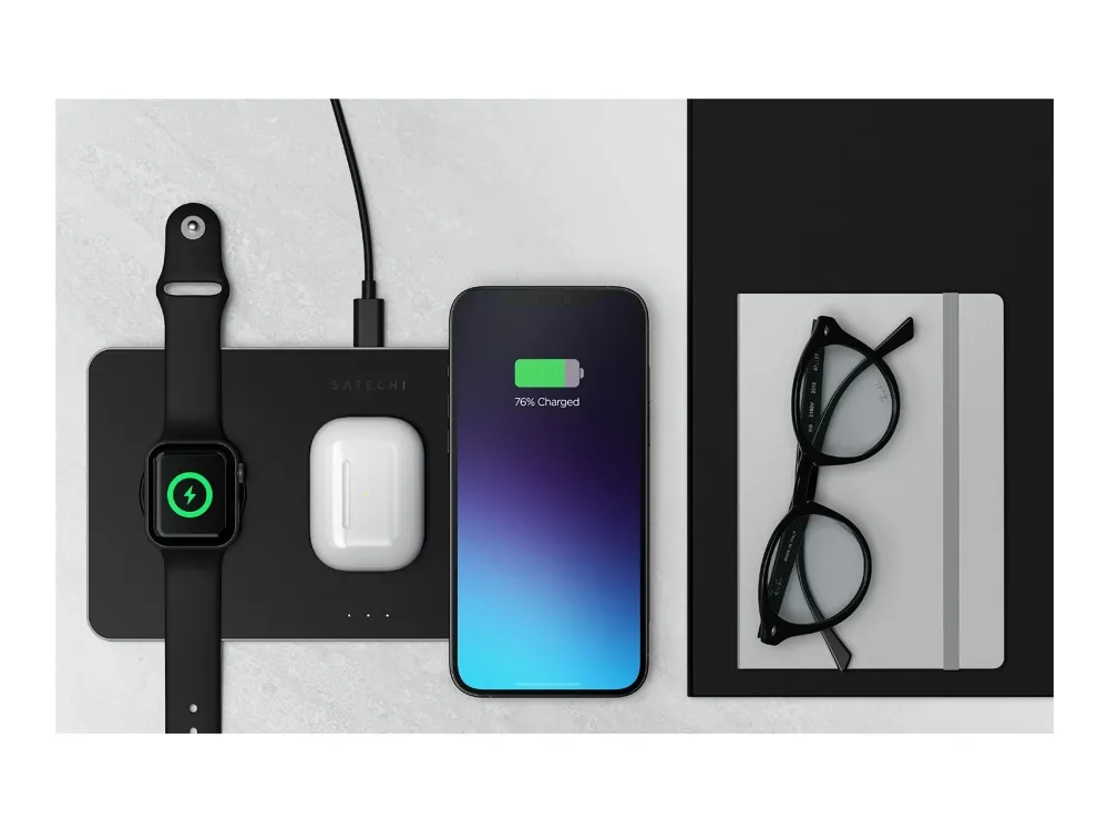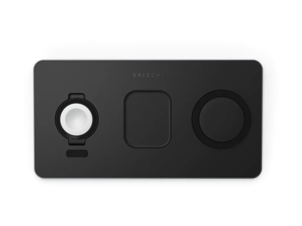 The Satechi Trio Wireless Charging Pad simplifies wireless charging with a convenient place for all your devices - so you'll never be without a charge. With faster-charging technology and intelligent safety features, the Charging Pad quickly powers a Qi-enabled smartphone, Apple Watch, and AirPods Pro all at the same time.
