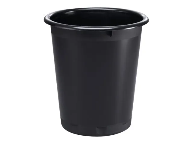 Rund papirkurv med greb kant. Indeholder 13 L. Mål: ø 290mm, højde 320mm. Delvist lavet af genbrugsplast.