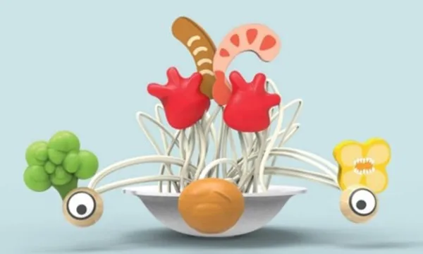 Bon appetit! Denne gang er det tilladt at lege med maden. Med Silly Spaghetti kan du lave forskellige sjove ansigter og forskellige retter. Bøj spaghettien i forskellige former, præcis som du ønsker. Den kabelovertrukne spaghetti er dækket med blødt stof, hvilket gør det at håndtere for de små hænder. Ingredienserne kan nemt fastgøre i spaghettien med de vedhæftede klip - vælg dine yndlingsmadvarer og klips dem fast på spaghettien. De forskellige overflader stimulerer børnenes taktile sanser. The Silly Spaghetti opmuntrer barnet til at udfolde deres kreativitet, sprog og sociale sammenspil.