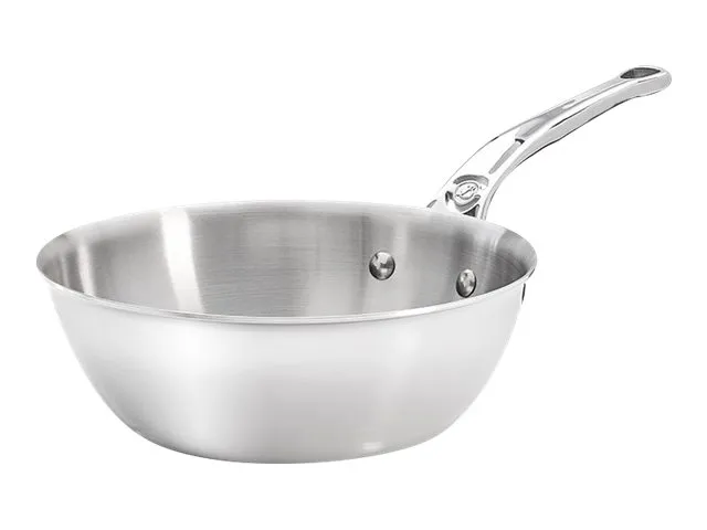 Multi-layer stainless steel provides perfect and controlled heat diffusion across the entire container for even cooking. The rounded sauté pan is ideal for reduction cooking, as its small base heats food quickly and the wide top diameter ensures greater evaporation as you stir the food. It is suitable for any heating source, including induction, and is also oven-safe. The long, elegant, ergonomic cast stainless steel handle, firmly fastened with rivets, guarantees a natural and comfortable grip. Stainless steel is practical, hygienic and easy to clean.