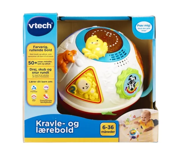 Bolden fra VTech er nærmest magisk! Bolden kommer med en masse sjove funktioner, en indbygget motor der aktiveres og får bolden til at bevæge sig, så barnet kan kravle efter den. Den farverige bold kommer med lyd og lys, der fanger og vedligeholder barnets opmærksomhed. Kan spille 4 sange og 12 melodier. Alder 6m+.