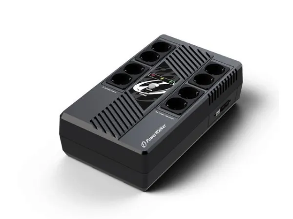PowerWalker VI MS is a line-interactive UPS series with multiple sockets. 4 sockets with battery backup for critical loads and 4 sockets with bypass for non critical loads. The integrated AVR function ensures clean and stable output during power outages or voltage fluctuations. The UPS functions can be monitored and controlled via USB communication, either with a software or without (HID). The multi socket design makes the VI MS series especially suitable for home and office applications. The UPS can be used on top of a desk or it can be mounted to a wall. Applications include home office, workstations, NAS etc. Furthermore, the USB charging port (2.1A) offers additional functionality, and the design allows access to the battery compartment via the back panel for easy battery replacement.