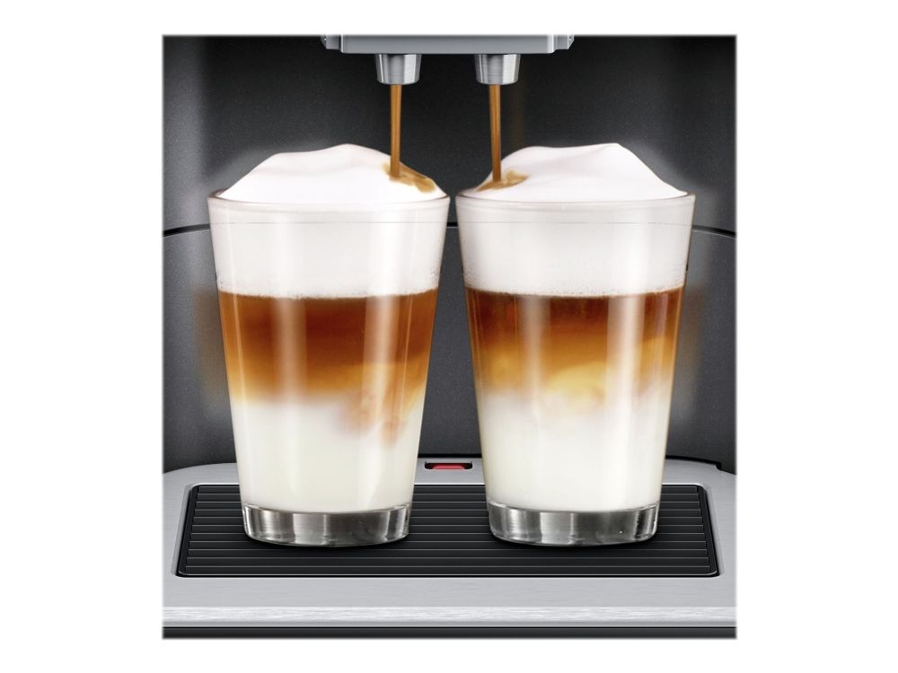 Din personlige kaffeverden begynder i et EQ.6 plus display. Med muligheden for at vælge to cappuccinos ad gangen coffeeSelect Display: Aromatisk kaffe og mælke specialiteter kan vælges og forberedes ved en berøring i sensor feltet autoMilk Clean - fuldautomatisk rensning og optimal hygejne. iAroma System - unik teknologi giver perfekt smag oneTouch DoubleCup: Din kaffe bliver brygget ved et tryk på en knap, nemmere kan det ikke blive. Og selv i to kopper samtidig, hvis du ønsker det. Mindre bitter smag i den ekstra stærke kaffe. aromaDouble Shot kværner kaffen to gange.