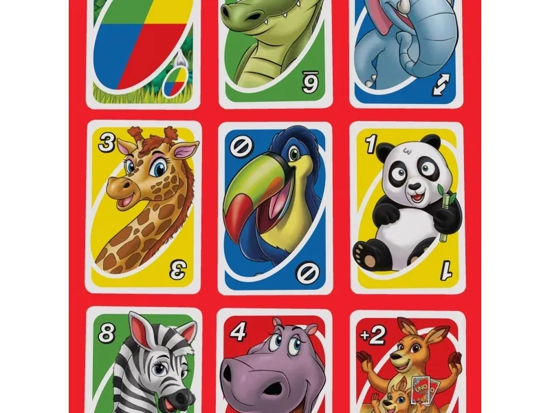 Denne enkle udgave af UNO-kortspillet til mindre spillere har flere spilniveauer, så børnene kan vokse sammen med spillet. Kortene har nuttede dyreprint for hvert tal fra 0-8, så børn fra 3 år nemt kan matche dem. De tre spilniveauer sikrer, at spillet følger med barnets udvikling. Spillerne konkurrerer om at slippe af med alle deres kort ved at matche et kort på hånden med det kort, der ligger øverst i bunken, enten med farver eller dyr/tal. Når du kun har ét kort tilbage, skal du huske at råbe "UNO"! Farver og mønstre kan variere.