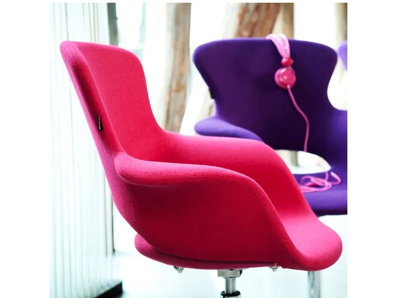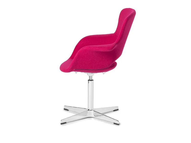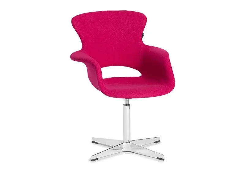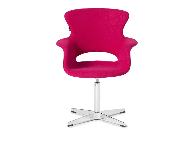 Stol Monaco med h x b x d (mm) 1050 x 700 x 600 og en siddehøjde på 460 mm. Farve BlommerødVelkommen til Monaco! Med sine iøjnefaldende farver vil Monaco være et populært og farverigt indslag i ethvert rum. Stolesædet er med helstøbt PU-kerne, helbetrukket med slidstærkt tekstil bestående af 30% uld og 70% polyester, og leveres på et forkromet, drejeligt understel med benkryds.Stolen kan med fordel benyttes til at friske café- og konferencerummet op eller som et livligt element i receptionsområdet eller venterum. Her er det kun fantasien som sætter grænser. Med Monacostolen bringer du sydeuropæiske vibrationer ind i dine lokaler! Leveres i blommerød.
