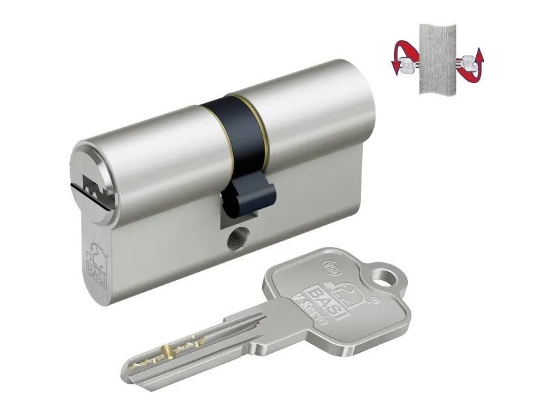 V55 - 35/55 mm N+G GL profil-dobbeltcylinder Den nye og førsteklasses V55 profil-dobbeltcylinder egner sig ideal til husdøre eller lejlighedsdøre. Der sker dagligt indbrud i tyske husholdninger, og ofte trænger tyve ind i huset ved hjælp af forkerte eller dårlige cylinderudstyr. V55 består af materialer i høj kvalitet, der sikrer en lang levetid og en høj slidstyrke. Derudover har anvendelsen af borefordybningen en picingbeskyttelse og udboringsbeskyttelse, der giver yderligere sikkerhed for dine døre. Pickingbeskyttelsen er en afskærmning, der forhindrer låsning af låsecylinderen ved hjælp af værktøj. Ved den såkaldte Lock-picing skubbes værktøjer som for eksempel difiche ind i nøglekanalen for at nedstøde de enkelte stifter, så cylindrens rotor kan drejes. Borebeskyttelsen er en sikringsforanstaltning for at forhindre boring af cylinderkernerne. Tapperne i Kern-cylind Med den såkaldte nød- og farefunktion kan døre også åbnes udefra, når en nøgle blokerer dørlåsen indefra. Det er for eksempel altid muligt at åbne døren med reservenøgle, hvis man har låst sig ud. Profilcylinderen leveres med 5 vendbare nøgler. Cylinderen er udstyret med et enssluttende system. Det betyder, at nøglen kan bruges til flere cylinderlåse. Uanset om det er til husdøre, ekstralåse, havedåger, kælderdør eller hængelåse - når du vælger et ensartet system, behøver du i fremtiden kun en nøgle til åbning af døre. Vær derfor opmærksom på nummeret på jævnlukning, når du køber.