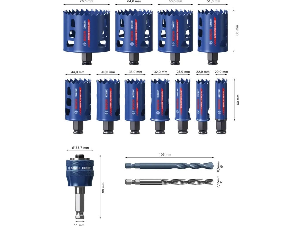 Bosch Expert Tough Material hulsavssæt - for plastik, mursten, blød flise, rustfrit stålark, træ med metal, multimateriale - 14 stykker
