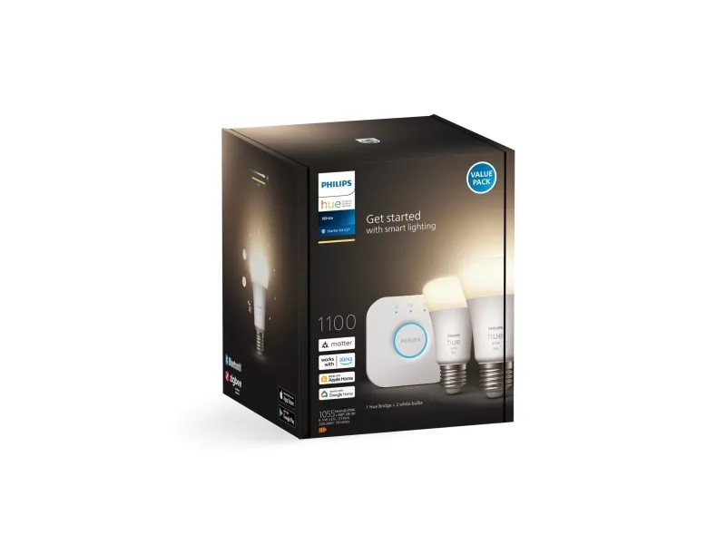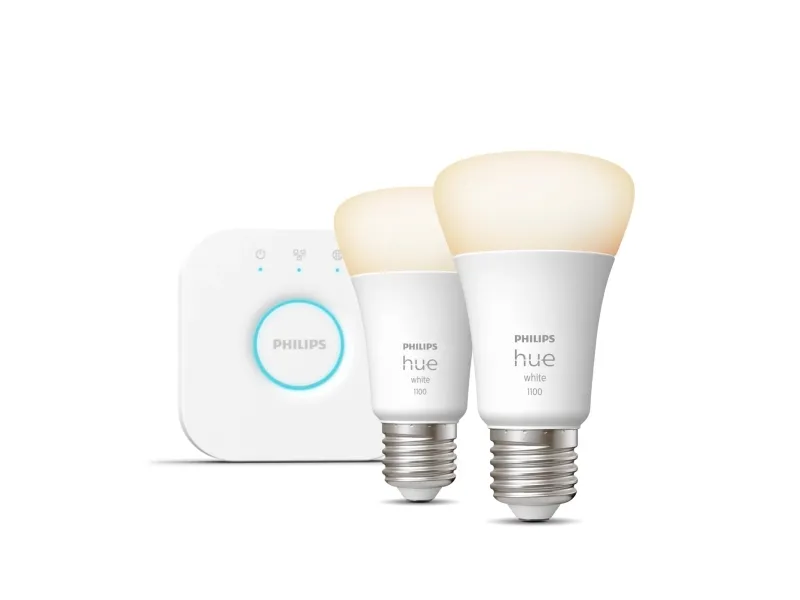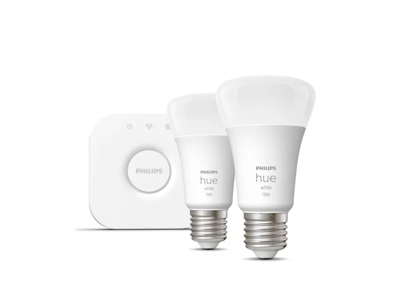 Philips Hue White Starter Kit - trådløst belysningssæt - LED-lyspære x 2 - form: A60 - E27 - 9.5 W - blødt hvidt lys - 2700 K - hvid