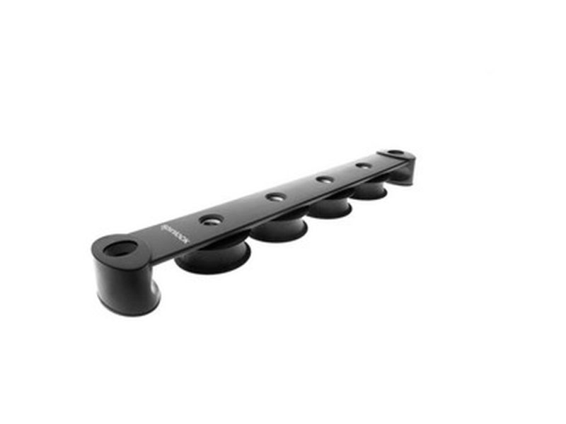 Spinlock fordelerblok / lineleder med 4 hjul Kan stables for at spare plads eller give ekstra kapacitet Kan monteres på buede overflader 50 mm hjul i kompositmaterialer Passer til tovværk op til 14 mm Maksimal arbejdsbelastning 2.000 kg Spinlock model nr.: T50/4