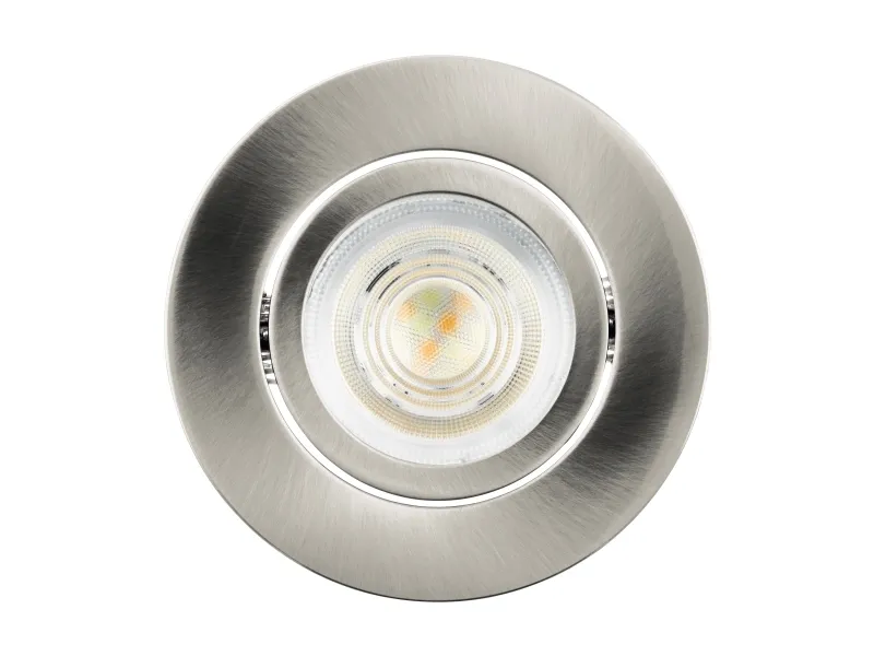 EGLO CONNECT-Z SALICETO-Z indbygningsspot i børstet stål. Kipbar. Højde 4,6 cm, diameter 8,8 cm, Indbygningshøjde 5 cm, hulmål 6,8 cm. LED, 4,7 watt, 345 lumen, 2700-6500 kelvin, RGB + Tunable white. Indbygningsspottet kan dæmpes og styres med fjernbetjening (medfølger ikke), via AwoX Home Control app (gratis), eller ved stemmestyring. Zigbee er kompatibel med Amazon Alexa og Google Assistent. IP20. Dette produkt indeholder en lyskilde med energieffektivitetsklasse: F.