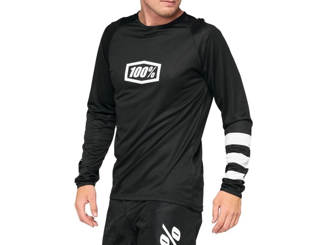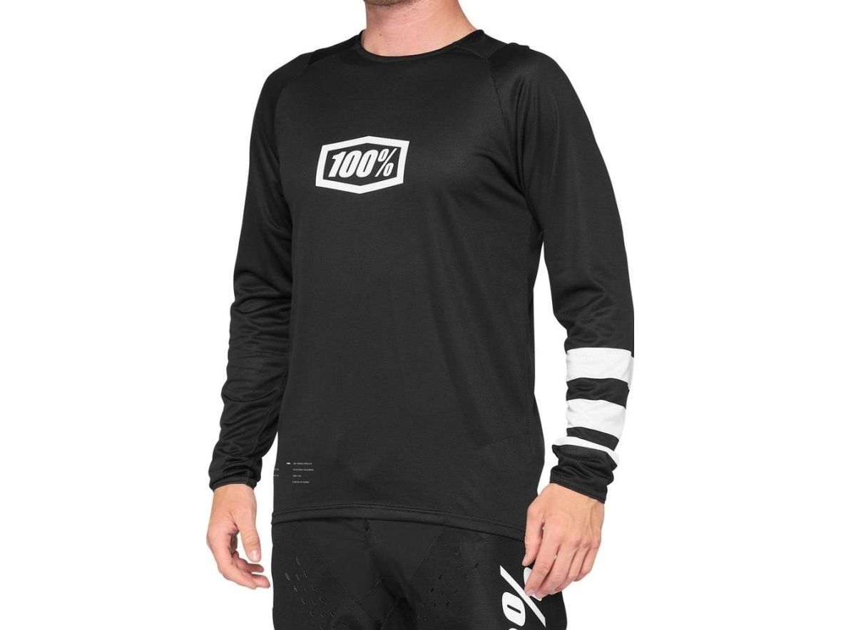 100% juniorskjorte 100% R-CORE Youth Jersey, lange ærmer, sort/hvid, str. M (NEW 2021)