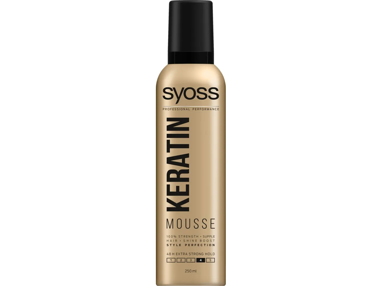 Syoss Keratin Mousse provides 48h style-control with extra strong hold, strengthens the hair and illuminates natural shine. It helps to protect the hair from blow-dryer heat and gives it suppleness. The formula is easy to brush out.
