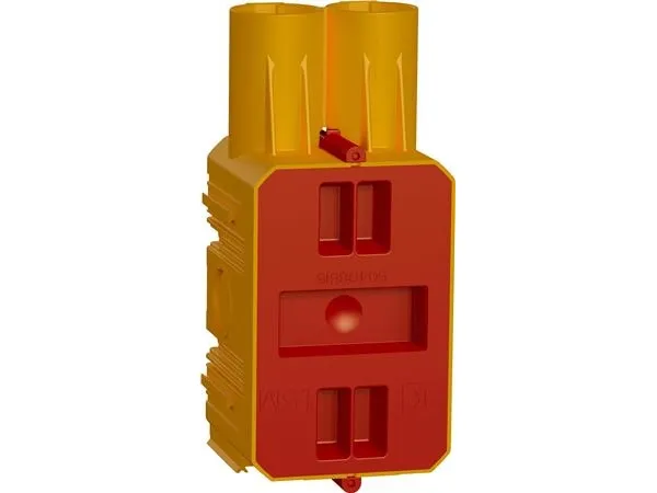 FUGA Prefab indstøbningsdåse 1,5 modul med låg, gul LK FUGA-rammer, -dåser og underlag er testet sammen med LK FUGA-indsatse. Schneider Electric kan ikke garantere for kvaliteten og overholdelse af gældende standarder, såfremt LK FUGA-produkter anvendes med produkter fra andre fabrikater.