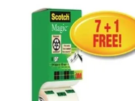 Tape, Scotch® MagicTM 810 Magic 810 tapen er den bedste allround-tape til jobbet, når tapen skal være usynlig ved brug. Den er skrivefast og usynlig ved kopiering. Usynlig tape med en bredde på 19 mm og en længde på 33 m. Kernediameteren er 25.4 mm. Best.enhed: Bonuspakke a 8 ruller – heraf 1 gratis rulle.