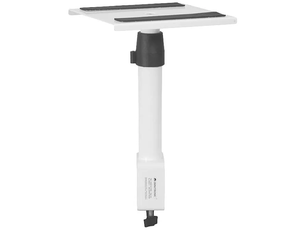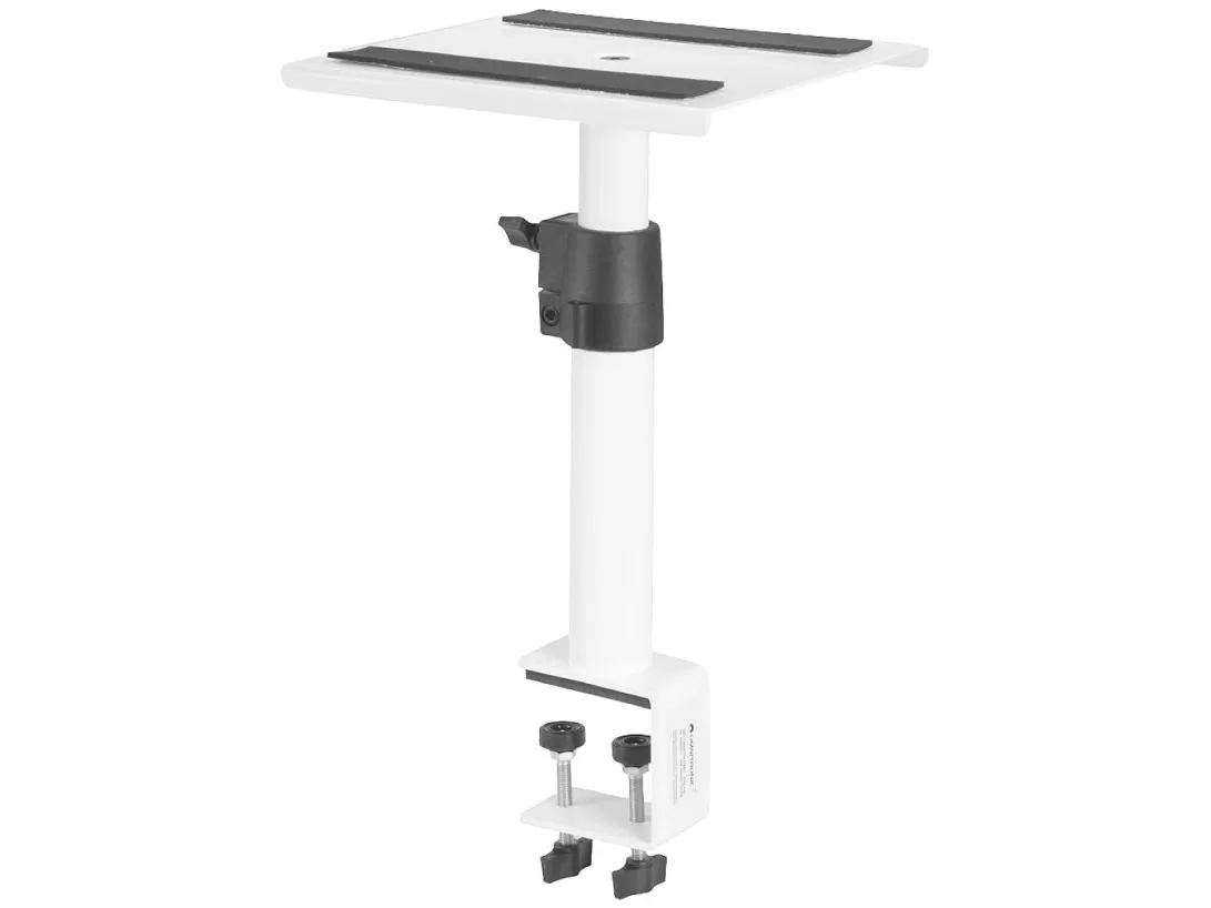 Omnitronic TrMO-2 skærmstander hvid Højdeindstillelig bordstander 25-42 cm, kan belastes op til 25 kgMed bordklemme til op til 60 mm stærke bordpladerSærligt egnet til nærfeltmonitorer