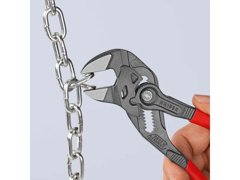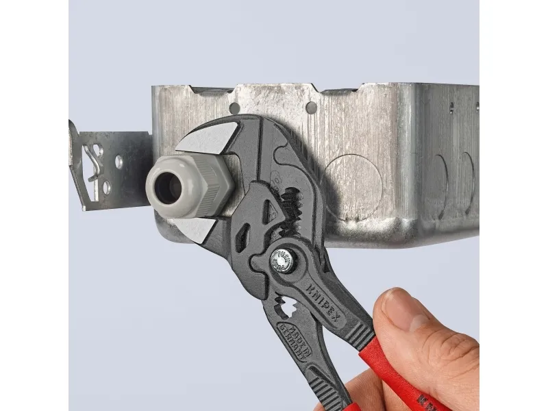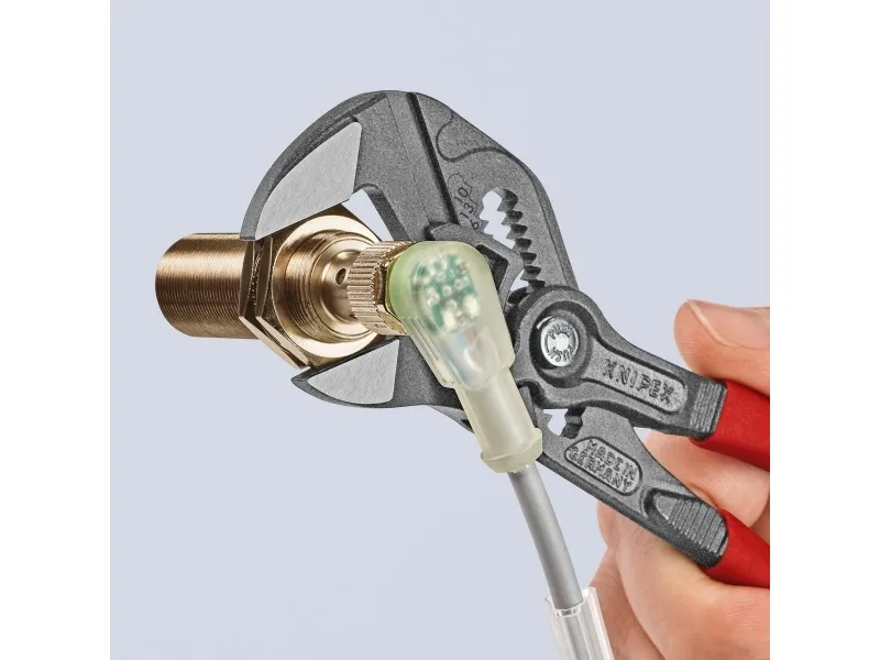 86 01 180 Tangnøgle erstatter et helt sæt skruenøgler, metrisk og tommer. glatte kæber for skånsom montering af overfladeforædlede armaturer - arbejde direkte på krom!. Indstilleligt skrueværktøj. Egner sig fremragende til at gribe, holde, presse og bøje arbejdsemner. Høj klemmekraft pga. 10-dobbelt håndkraftforstærkning. Ingen beskadigelse af kanterne ved sarte armaturer pga. spillerumsfri påsætning over hele fladen. Trinløs gribning af alle nøglevidder op til den angivne kapacitet vha. parallelt førte kæber. Ledbolten går sikkert i indgreb: ingen utilsigtet ændring af indstillingen. Indbygget skraldefunktion for hurtig spænde og løsne opgaver - uden at fjerne den fra emnet. Øget gribekapacitet takket være to ekstra indstillingspositioner: Trinløst greb om alle nøglestørrelser op til 40 mm. 10 % lavere vægt ved samme stabilitet. Praktisk indstillingsskala: En laserskåret skala gør det muligt at indstille nøgleværdien på forhånd, inden der gribes. med smalle gribekæber - til skrueopgaver, som kræver slankt værktøj.