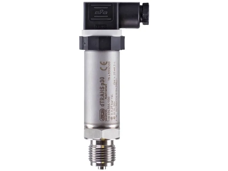 Måletrykstransducer, 0 til 400 mbar rel., 4 til 20 mA zl, G 1/2, Ledningsdåse Tryktransmitteren kan anvendes i flydende og gasformige medier. Det komplet svejsede målesystem kræver ingen pakninger og sikrer højeste processikkerhed. Kernen er en piezoressitive målecelle, der er sikker, pålidelig og temperaturbestandig med høj overbelastningsstabilitet og langtidsstabilitet. Takket være materialevalget af de trykmellemberørte dele (rustfrit stål 316 L/316 Ti) og et bredt temperaturområde fra -30 til +120°C kan tryktransmitteren anvendes til mange forskellige industrielle formål.