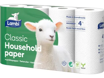 Køkkenrulle Lambi 2-lags hvid - (5 pakker x 4 ruller)